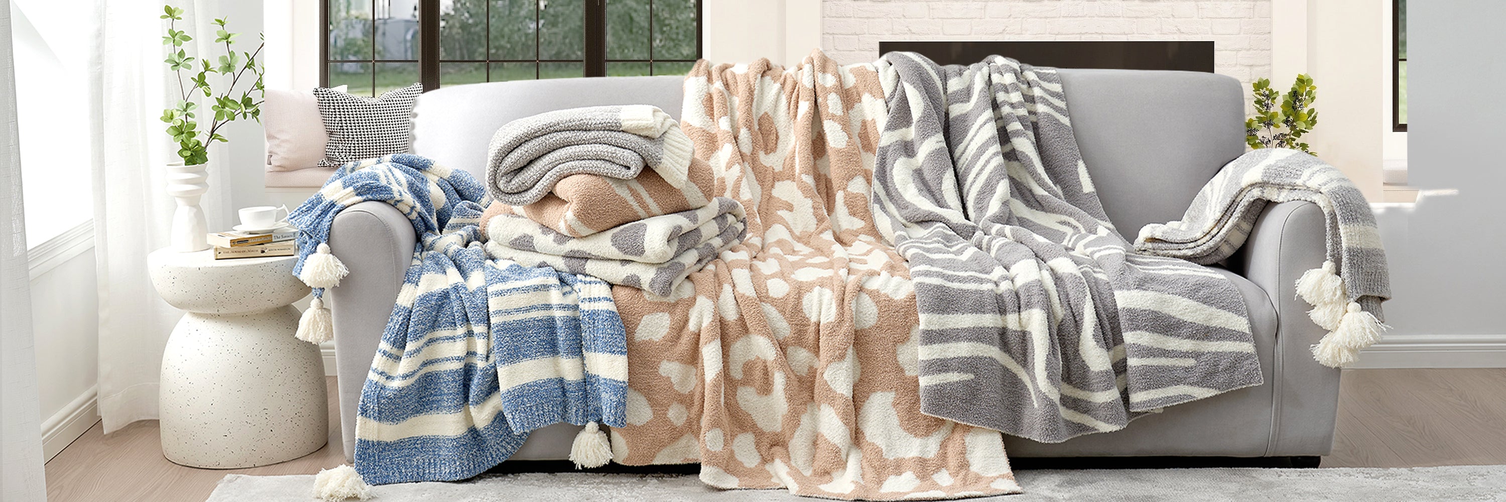 Soft Ribbed Feather Yarn Throw Blanket