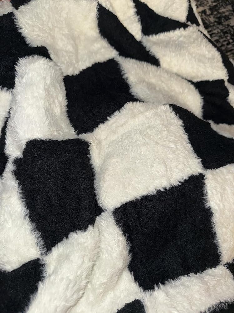 This luxurious blanket combines a trendy checkered pattern with ultra-soft faux fur and feather yarn backing. Perfect for couch cuddling, bed decorating, and adding stylish warmth to any room. Multiple colors available.
