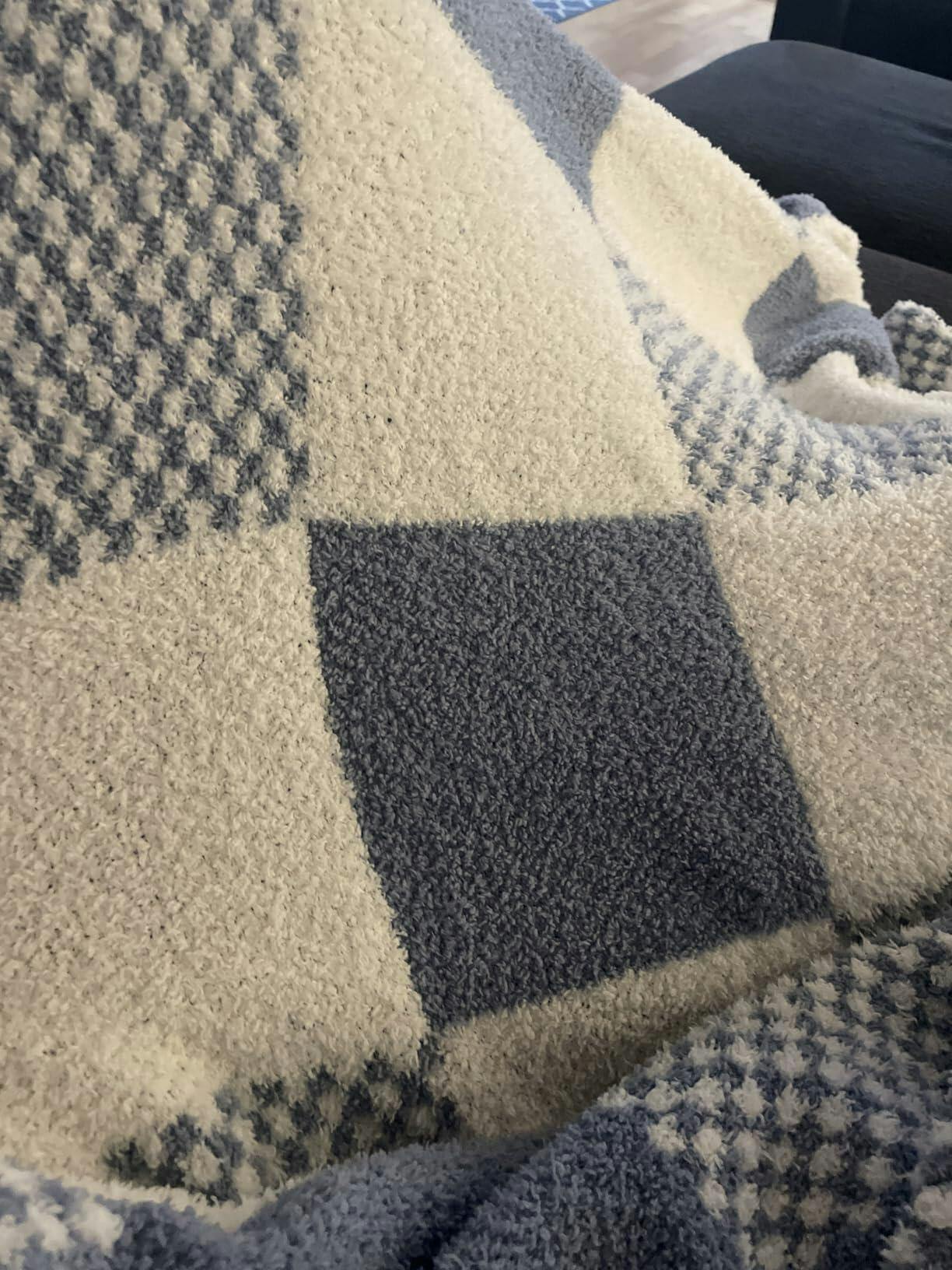SnugCozy Checkered Feather Yarn Knit Throw Blanket