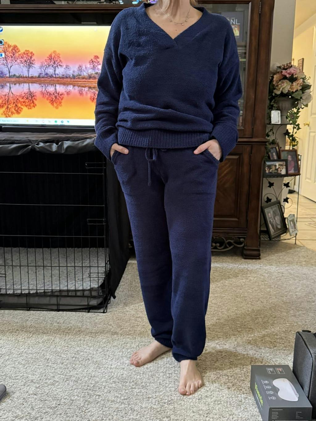 SnugChic Women Long Sleeve V-neck Knit Loungewear Set for Winter